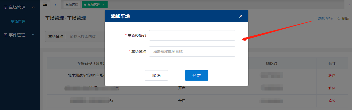 運(yùn)維平臺綁定車場: