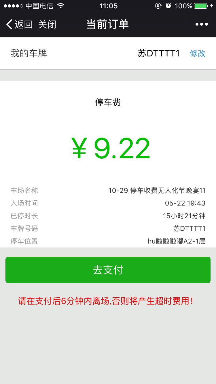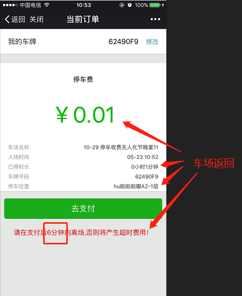 車主進入車場產生訂單后,在場內可以掃車場放置的場內預付二維碼進行預支付。