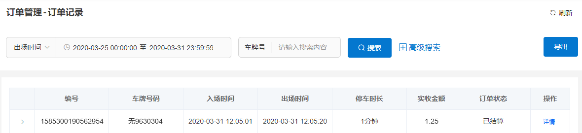 云端寫一條該無牌車的訂單記錄,有當前出場圖片。