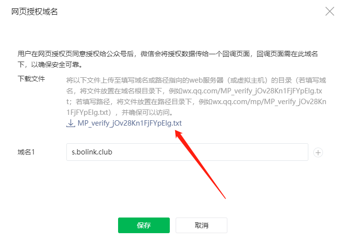 8、公眾號(hào)需要配置網(wǎng)頁授權(quán)域名 s.bolink.club(下載圖中文件發(fā)給支付平臺(tái)人員進(jìn)行配置)