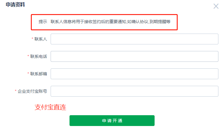 支付寶直連填寫信息: