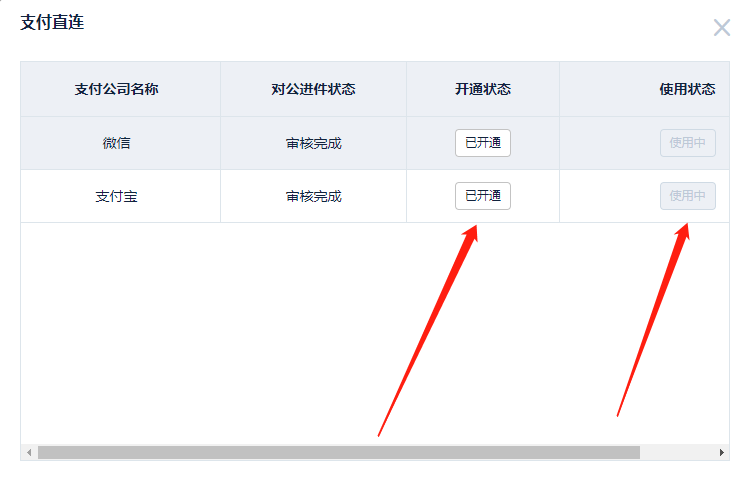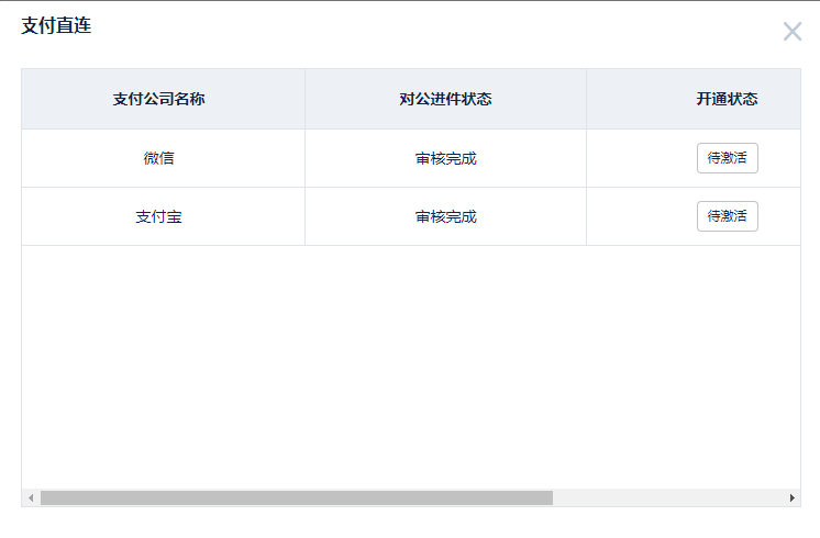 6、按照頁面提示激活后,泊鏈審核人員會在約0.5個工作日內(nèi)處理完剩余流程,完全開通后,車場可以看到當前已開通的直連支付: