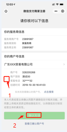 4:核對商戶信息,點擊“確認無誤”