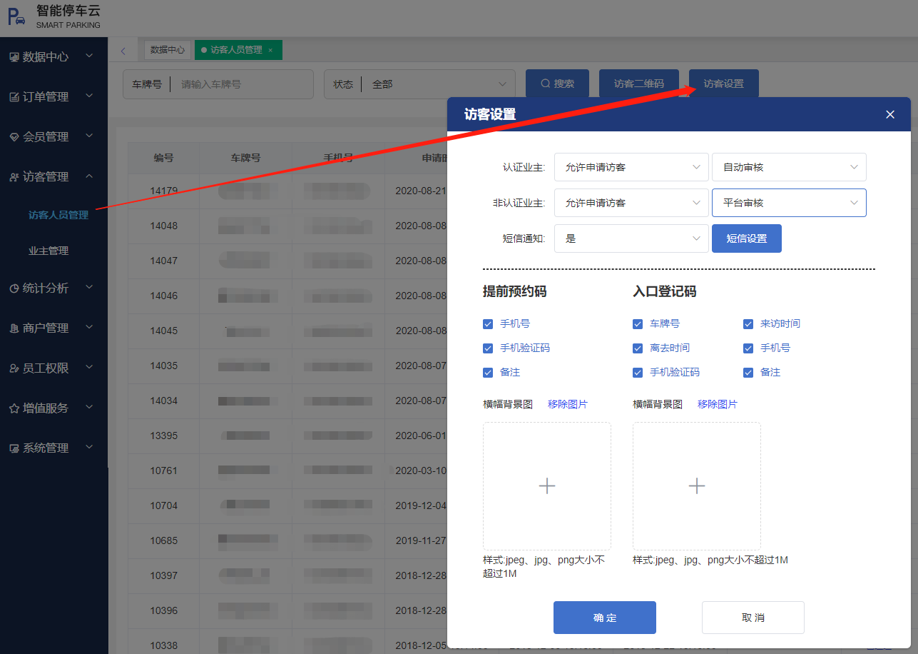 提前預約碼和入口登記碼,在車主填寫訪客申請頁面需要展示的內容,可在訪客設置里勾選。